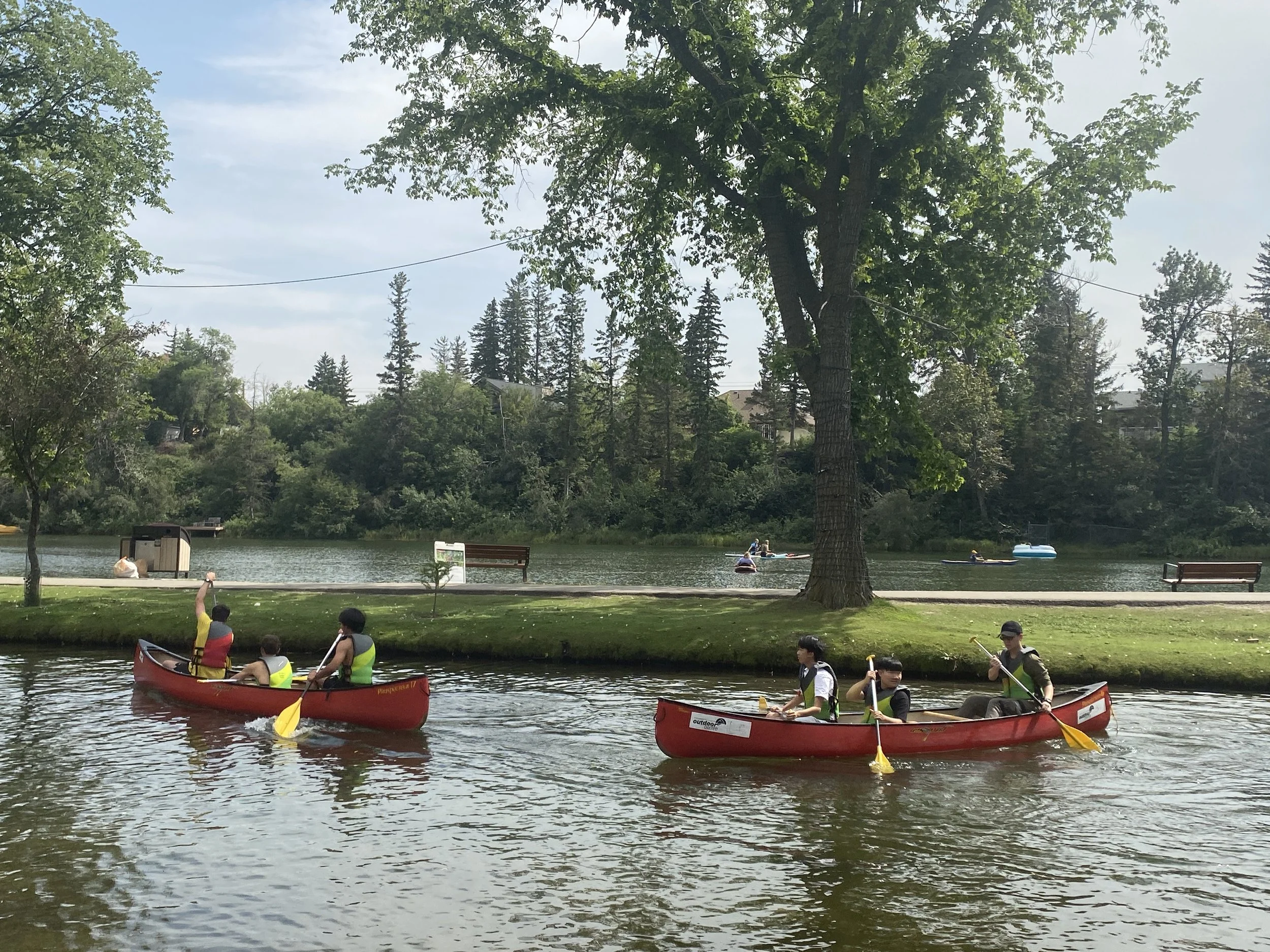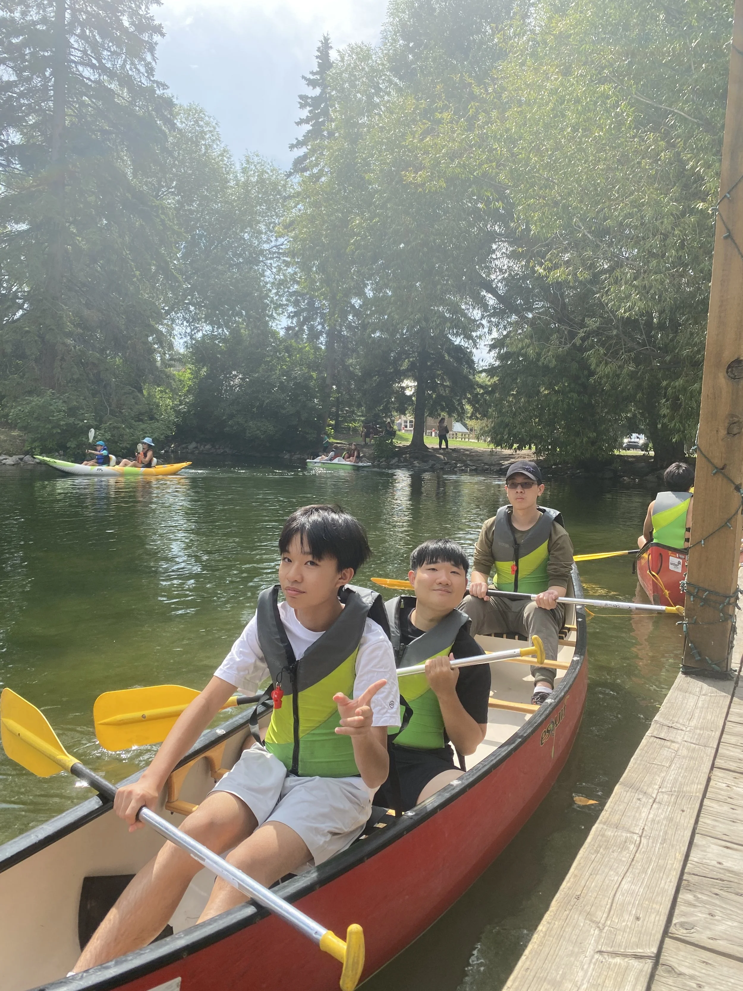 In the afternoon we did canoeing and climbing. The canoeing we did at a beautiful lake where the instructors taught us the basics of canoeing including how to draw, pry, C stroke and J stroke! In climbing we learned how to help each other climb well also trying plenty of different courses. Both activities went amazingly fun and were filled with learning!