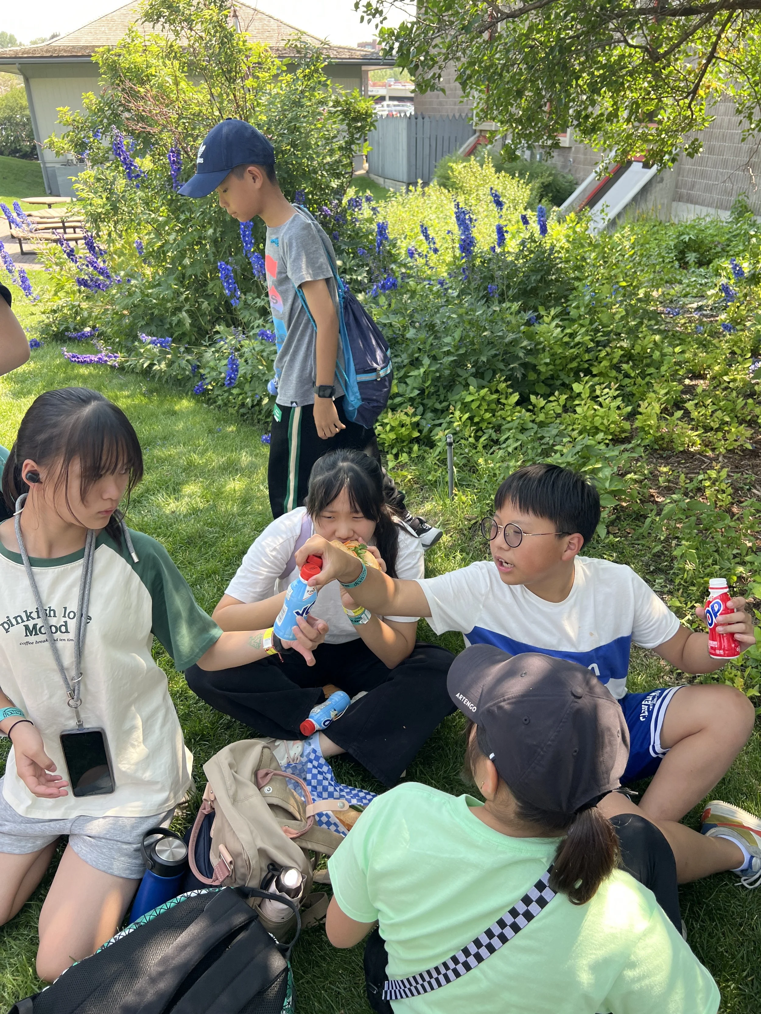 Today’s adventure started off with a quick breakfast and a swift ride to the Calgary Stampede. Students were pumped to explore the vast rodeo filled with carnival games, roller coasters, and many types of food. One group decided to start their day by visiting the drop tower! We spent many hours traversing and exploring what Stampede has to offer for first-time goers. With sunscreen applied and water bottles filled, we used our English skills to talk to and navigate around. One highlight from today is Ryan, Nelson, and Calvin trying out ketchup-flavoured ice cream. We also visited the dog and horse shows throughout the day. It’s awesome to see what these animals are capable of! After some hearty sandwiches for lunch, many challenged themselves to try out roller coasters and carnival games. While the lines might have been a bit long, students were happy to hang out and chat with their peers. All of this culminated with a trip back to SAIT with lasagna for dinner. A full day for sure! Here’s to hoping that we made some life-long memories and continue to make more!
